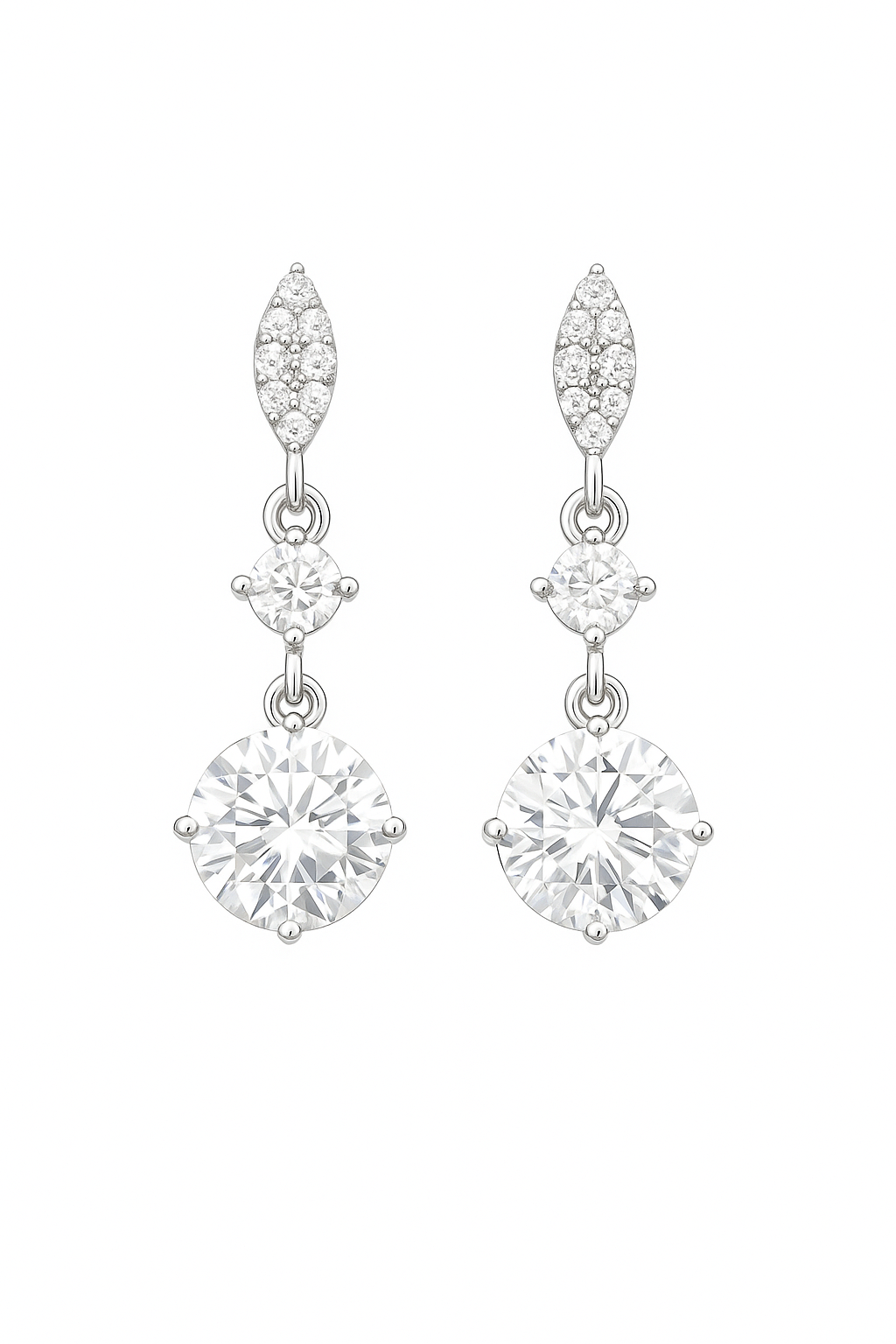 | Stainless Steel | Silver tone and Stone Detailing | Star Drop Earrings |