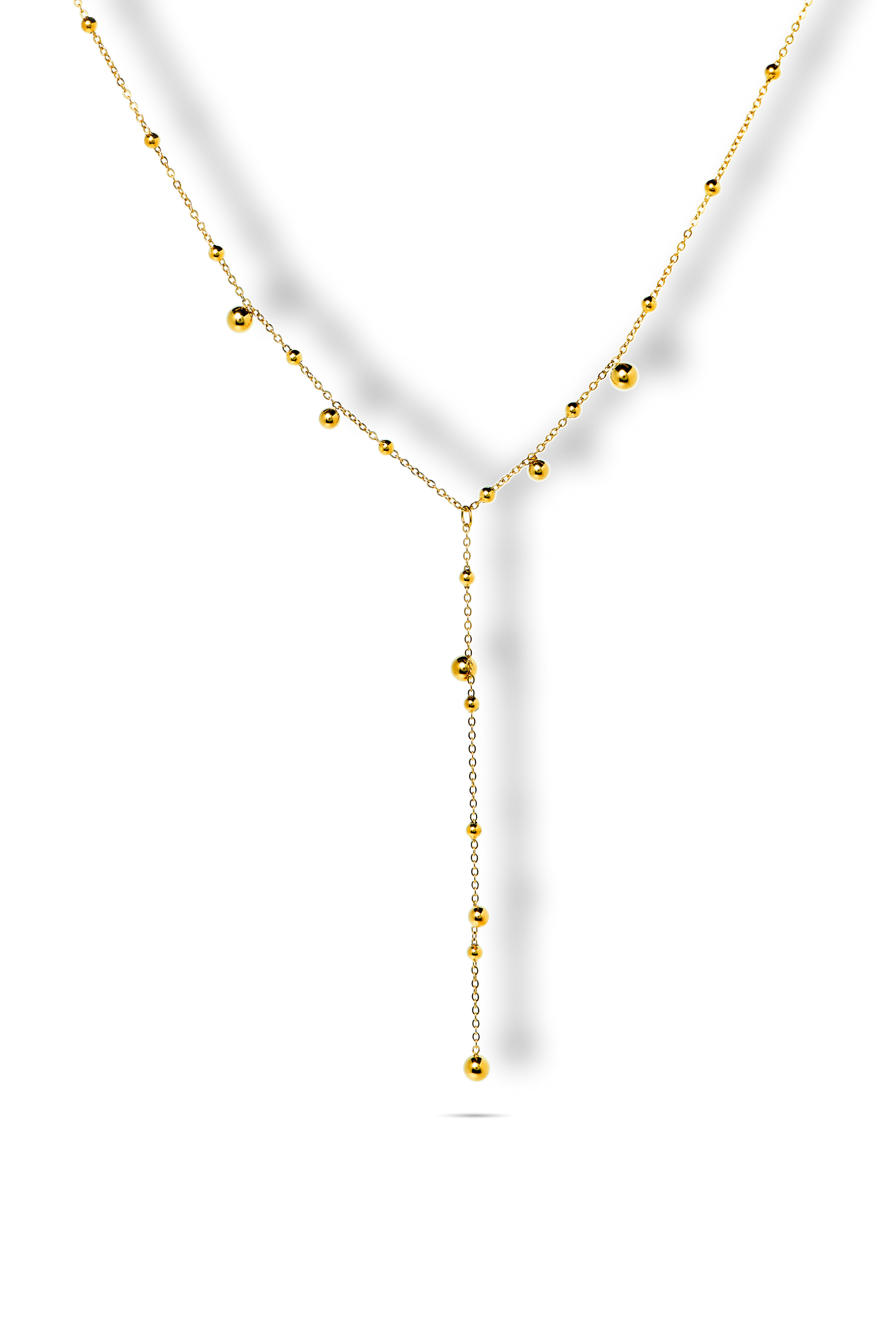 Y-Shape Gold Bead Drop Necklace for Women | PrivaY-Shape Gold Bead Drop Necklace for Women | PrivaY-Shape Gold Bead Drop Necklace for Women | Priva